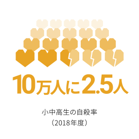 こころデータKOKORO DATA あなたの学校の生徒数は? 何らかの悩みを抱える生徒の数 幻覚や妄想など精神疾患に似た経験(PLEs)のある生徒数 PLEsから精神疾患に移行する人数 (大学) 大学中退者の人数 (高校) 高校中退者の人数 (中学校) 中学校の長期欠席者の数 こころの病は日本の社会課題 深刻な医師不足 学校現場で広がる課題 学習指導要領の改訂